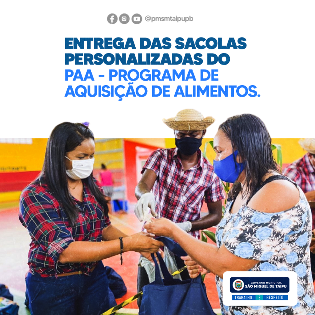 A Prefeitura de São Miguel de Taipu por meio da Secretaria Municipal de Assistência Social realizou a distribuição de alimentos do Programa de Aquisição de Alimentos (PAA) e a entrega das sacolas personalizadas que será utilizada em todas às entregas, organizado pela secretaria de ação social em clima de Festa Junina.