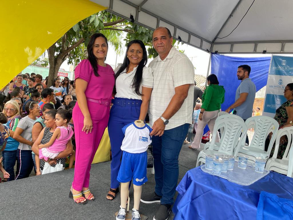 Prefeitura Municipal de São Miguel de Taipu realiza a entrega do fardamento que aconteceu na manhã desta quarta-feira (21), e contou com a presença do gestor municipal, da secretária de Educação Edilene Santos e da equipe pedagógica, além de pais dos estudantes e alunos.