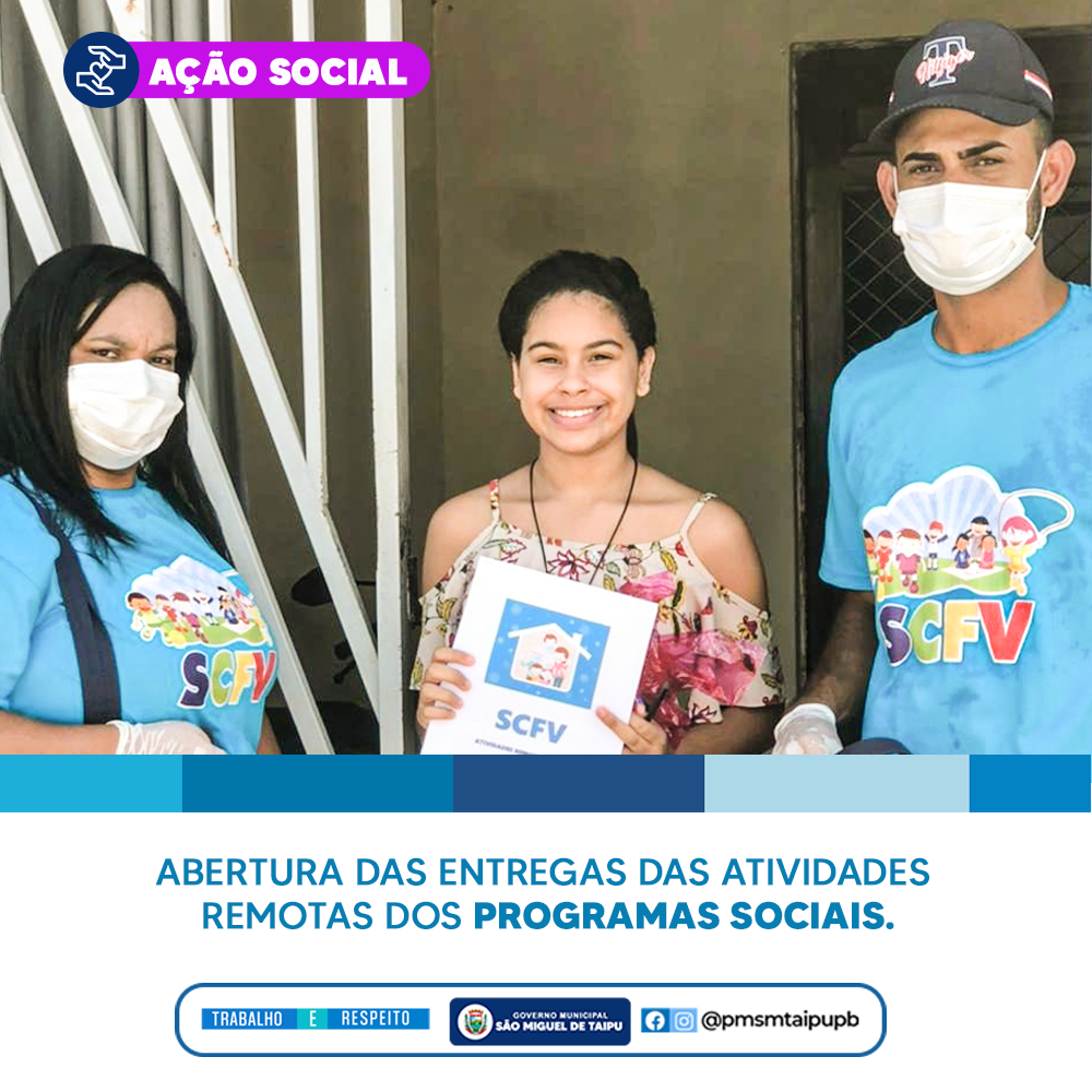 A prefeitura Municipal através da secretária de Assistência Social, por meio do Serviço de Convivência e Fortalecimento de Vínculos, realizou a entrega das atividades remotas das crianças e adolescentes que participam do programa.