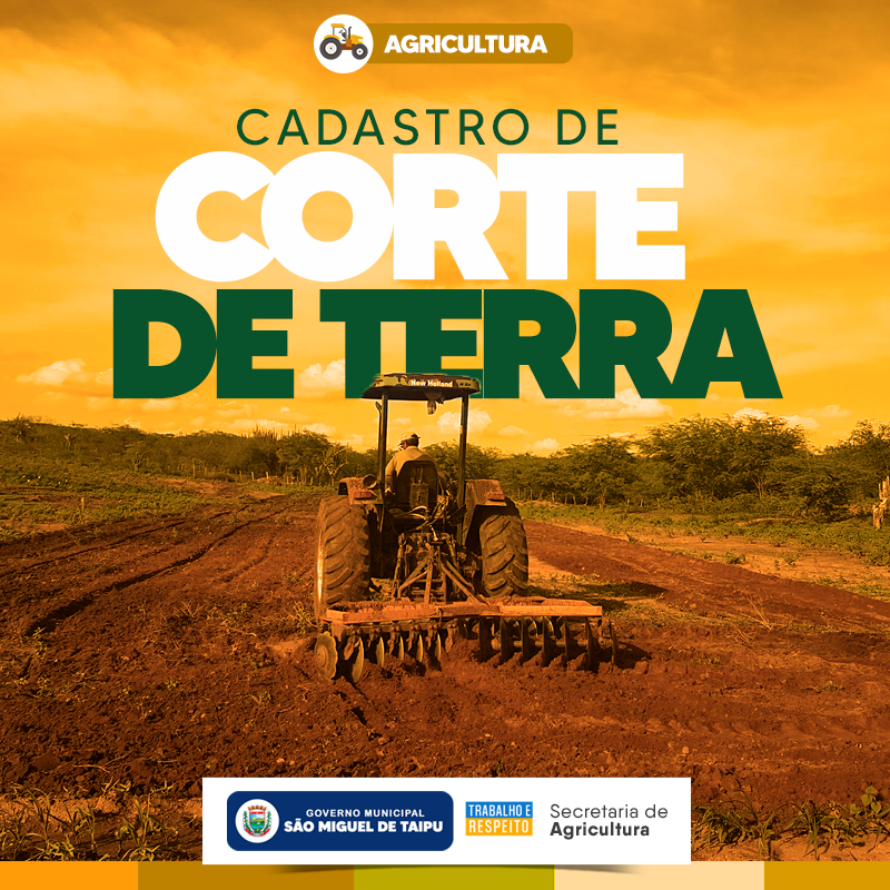 Nesta segunda-feira (01), a Prefeitura Municipal de São Miguel de Taipu, através da Secretaria de Agricultura, iniciou o cadastro do CORTE DE TERRA GRATUITO Para a população do município. Para se cadastrar o cidadão deve levar os seguintes documentos: