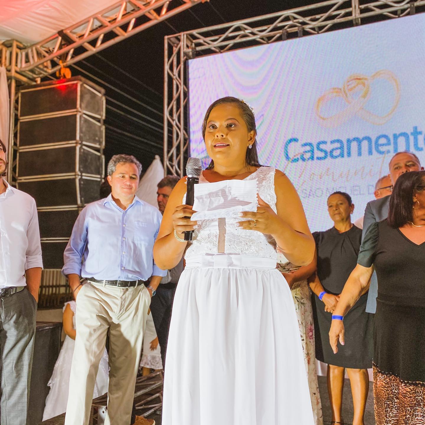 Durante a cerimônia do matrimônio, o prefeito Laelson Albuquerque parabenizou a todos, desejando-lhes uma vida próspera, feliz e abençoada por Deus. Ele aproveitou a oportunidade para parabenizar a sua esposa pela dedicação e carinho juntamente também com sua equipe da ação social, responsável pela realização do evento, e falou da alegria em prestigiar momentos como este, que refletem o comprometimento da gestão municipal para com a população.