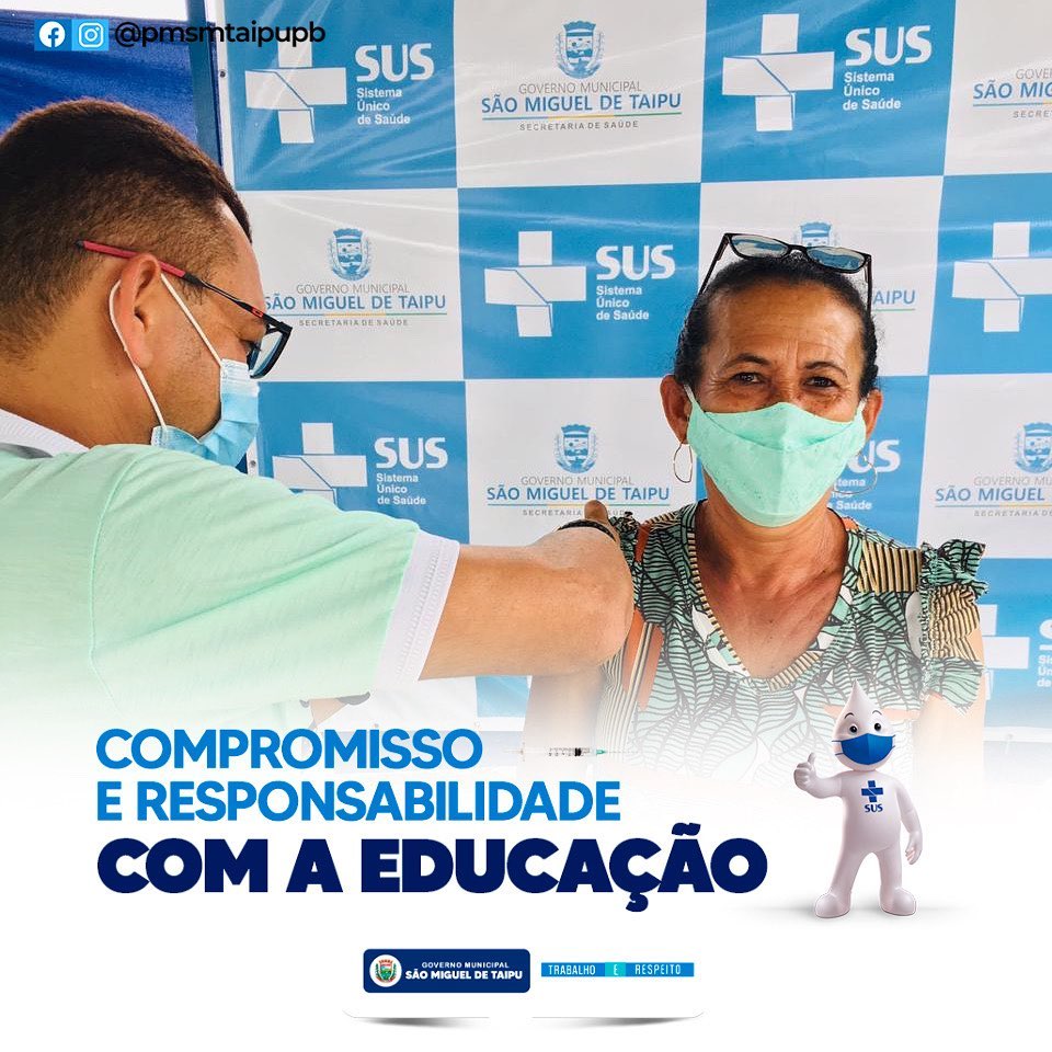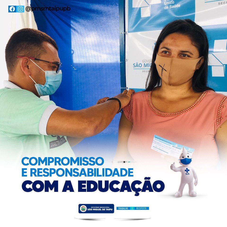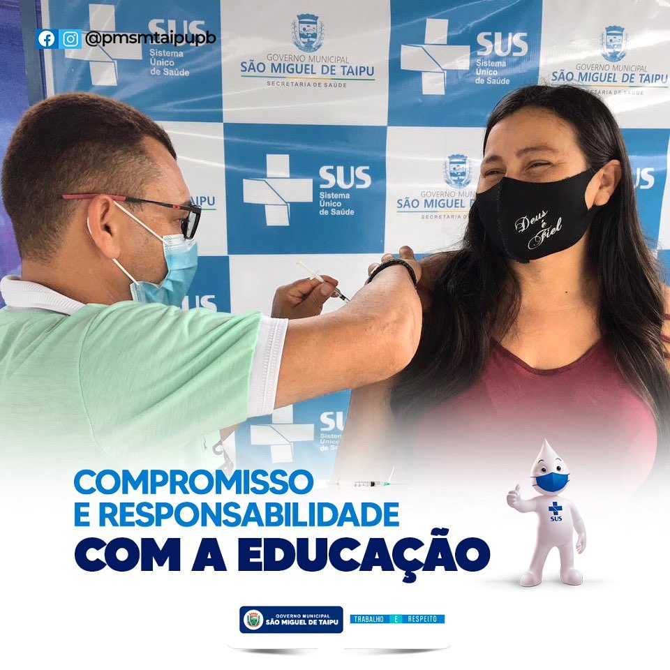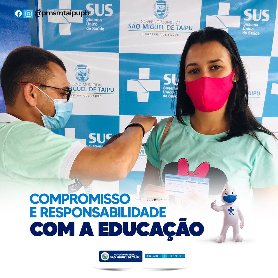 O Governo Municipal de São Miguel de Taipu por meio da secretaria de saúde, segue realizando a vacinação dos trabalhadores da educação do nosso município. Os profissionais da saúde estão trabalhando incansavelmente para levar a vacinação para todos. #TrabalhoeRespeito