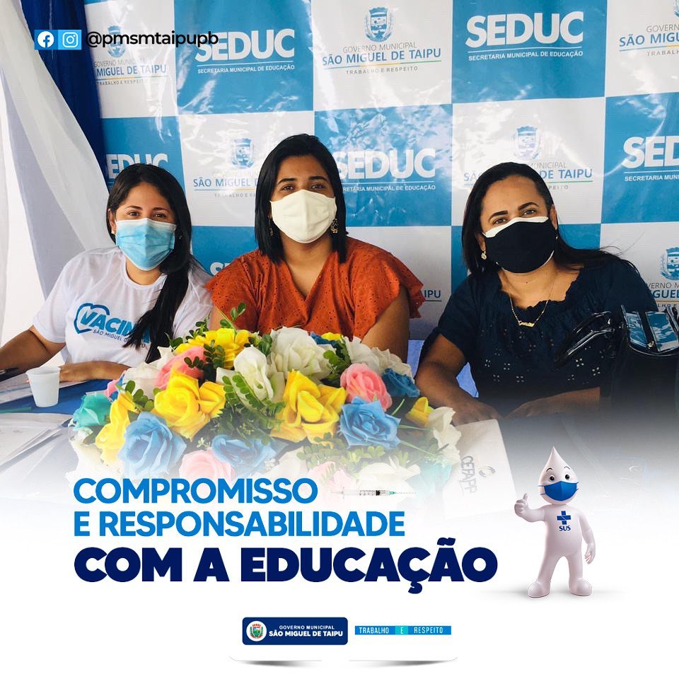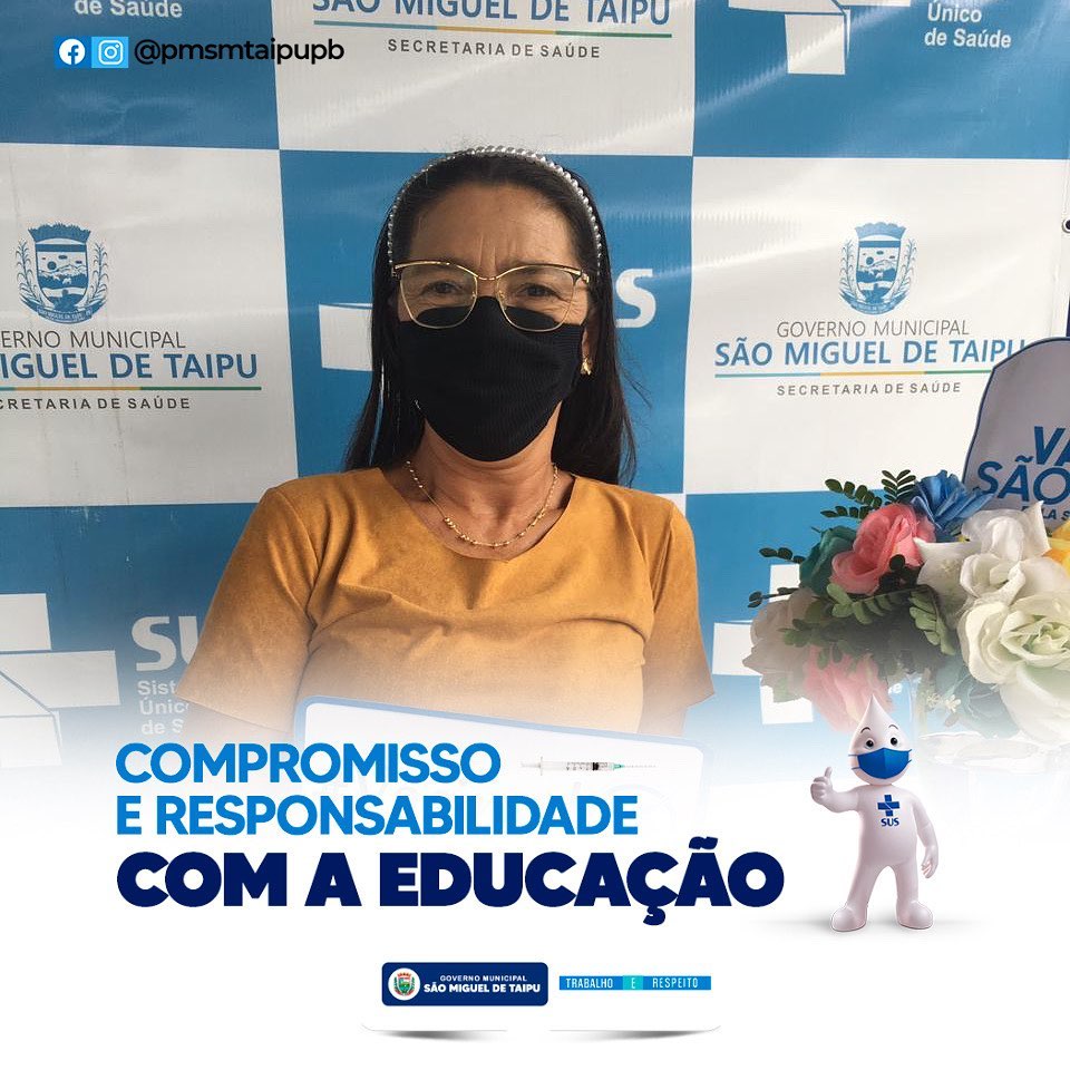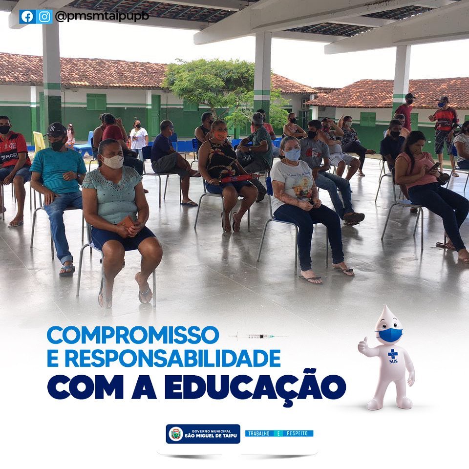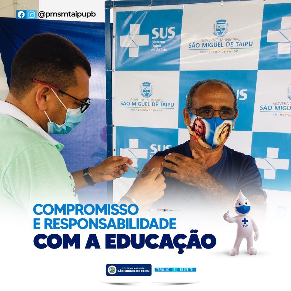 O Governo Municipal de São Miguel de Taipu por meio da secretaria de saúde, segue realizando a vacinação dos trabalhadores da educação do nosso município. Os profissionais da saúde estão trabalhando incansavelmente para levar a vacinação para todos. #TrabalhoeRespeito
